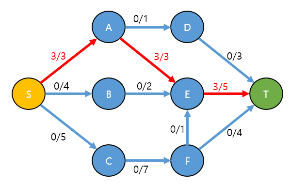 - 경로에 있는 간선들의 잔여 용량 중 최솟값을 찾아 그만큼의 유량을 흘려보냅니다.