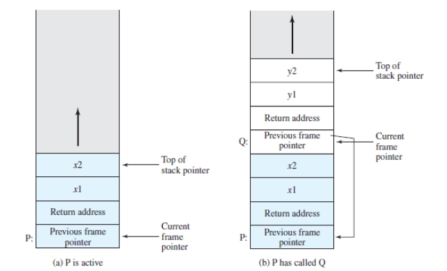 process가 kernel mode일 때 procedure call, return을 관리하기 위해 사용됨.