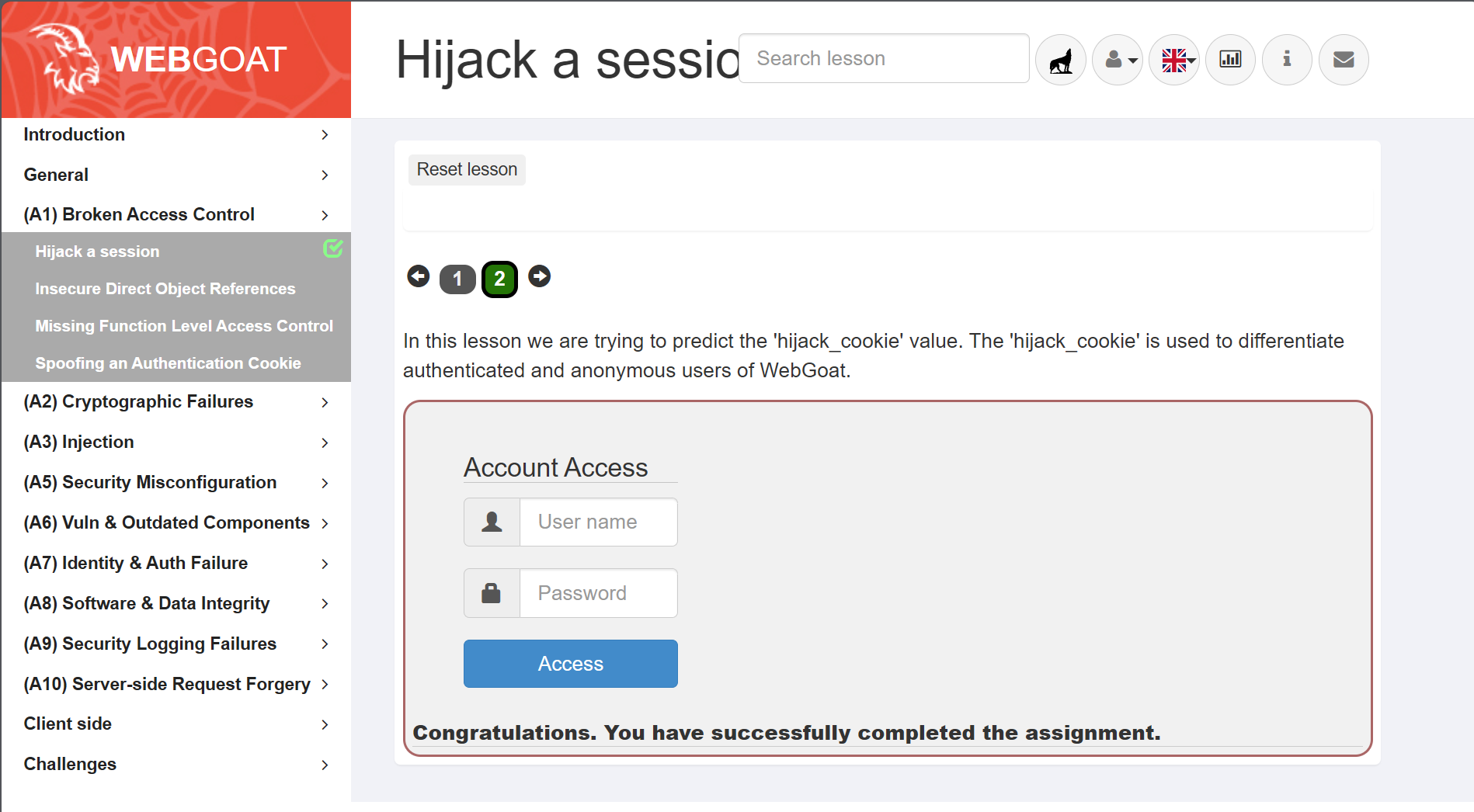 2. Burp Suite를 통해 로그인 요청에 대한 HTTP request와 response를 intercept하여 hijack_cookie라는 session 값을 확인한다.