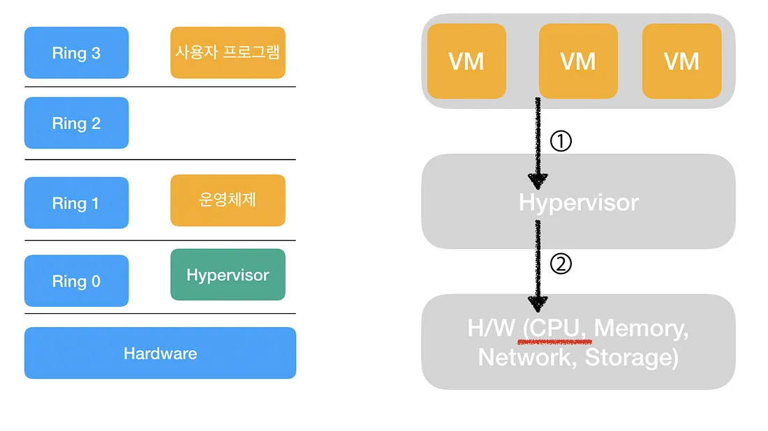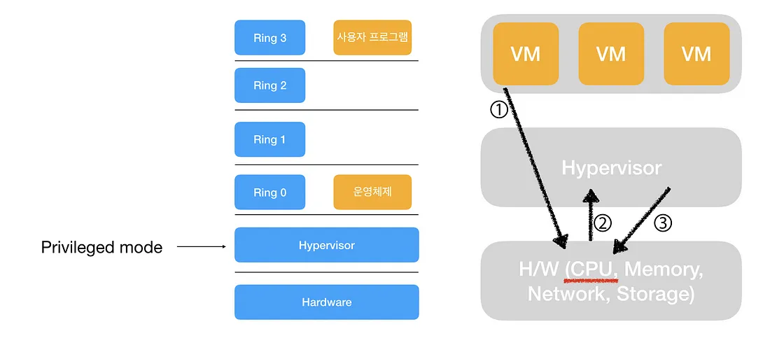 💡 TMI 최신 CPU의 하드웨어 가상화 지원 기술(Intel의 VT-x, AMD의 AMD-V) 덕분에