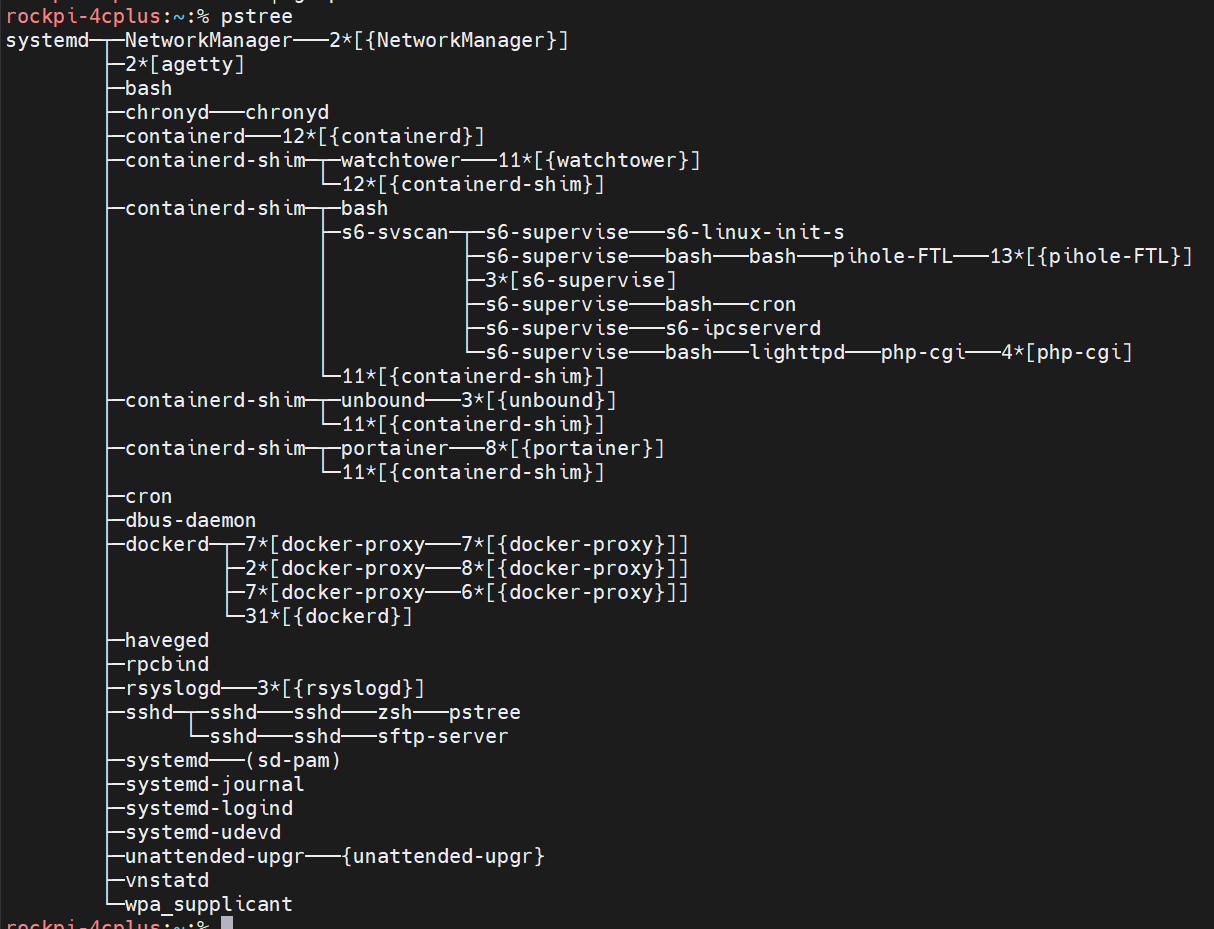 pstree: 실행 중인 프로세스를 부모-자식 관계의 트리 구조로 시각화하여 보여줍니다.