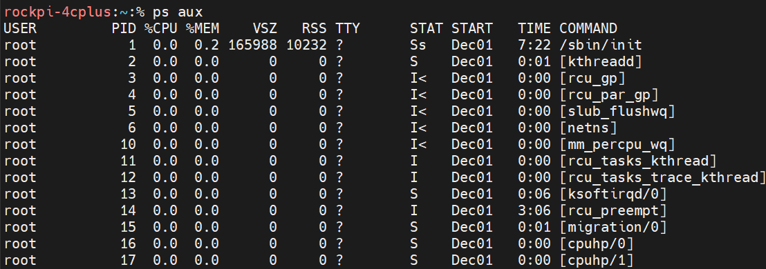 aux | RSS (실제 메모리 사용량), TIME (총 CPU 사용 시간) 등 확인 |